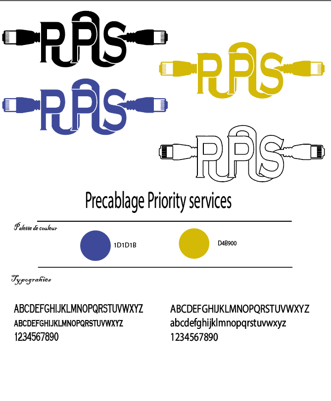 Au cours de mon alternance, j’ai eu l’opportunité de perfectionner la charte graphique d’une entreprise de bâtiment (Précablage Priority Services ), contribuant ainsi à renforcer son identité visuelle et à améliorer sa communication auprès de ses clients.