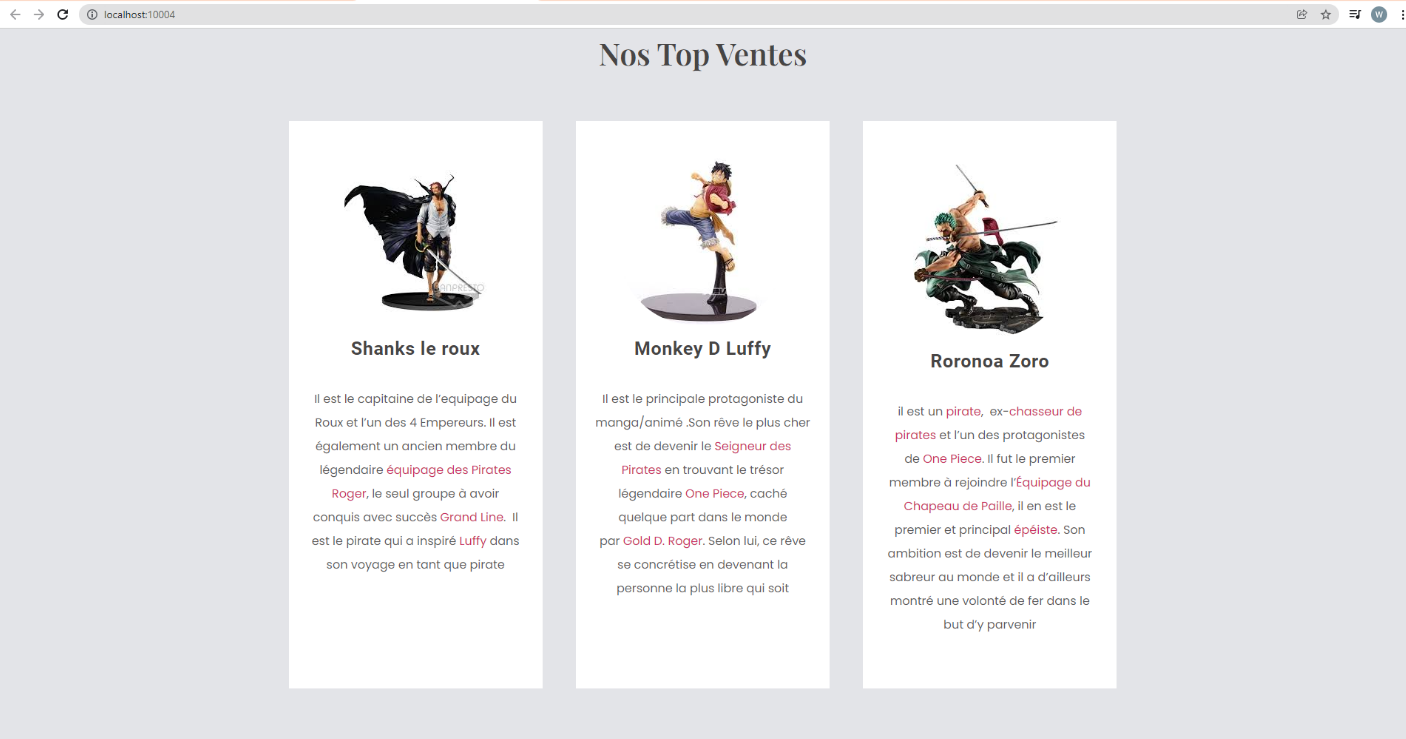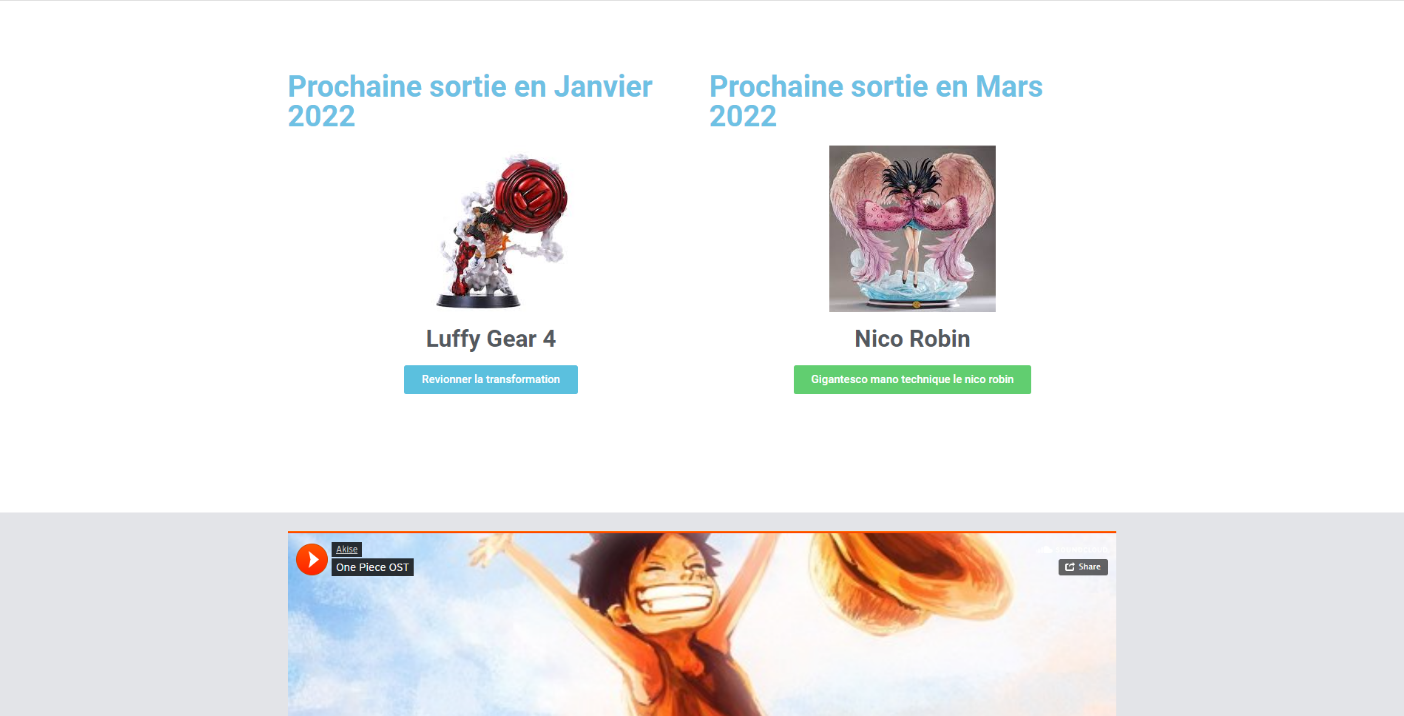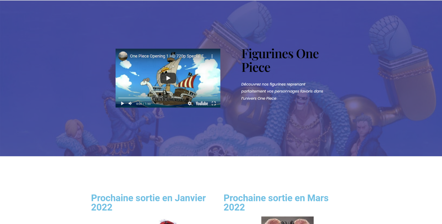 J’ai pu créer en cours mon premier site internet, il s’agit d’un site spécialisé dans la vente de figurines One Piece.